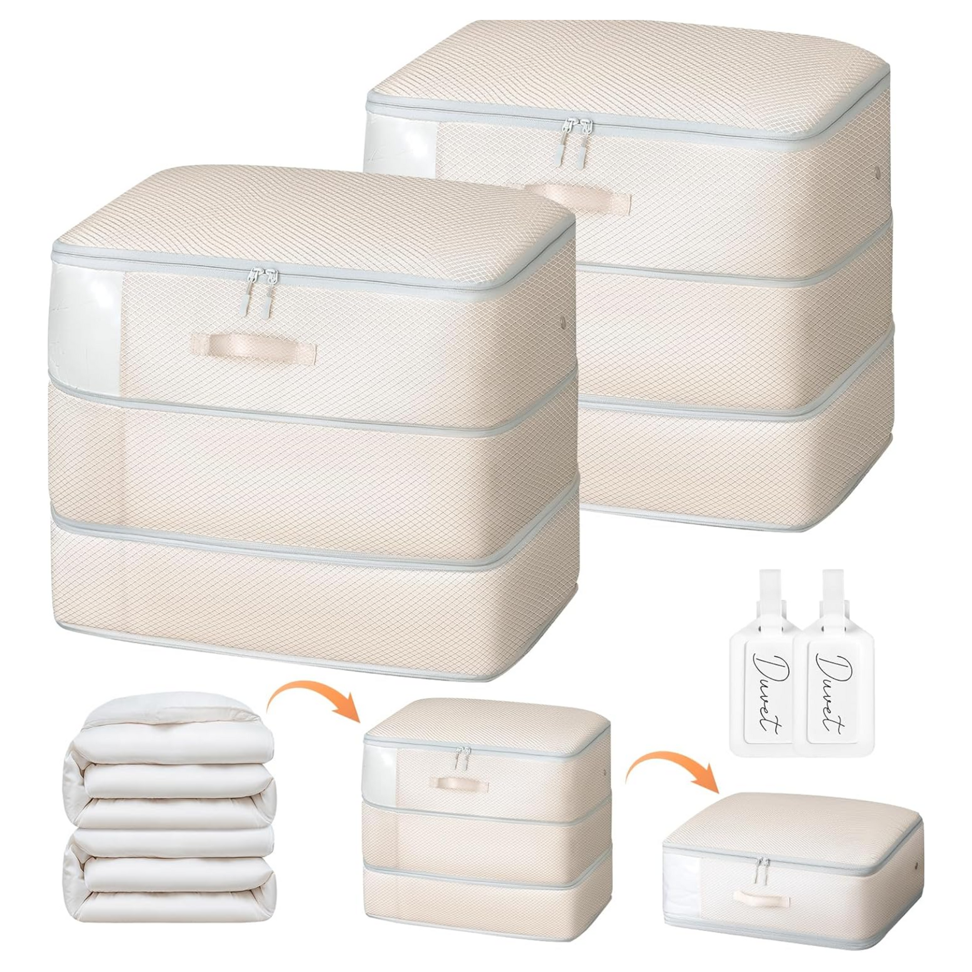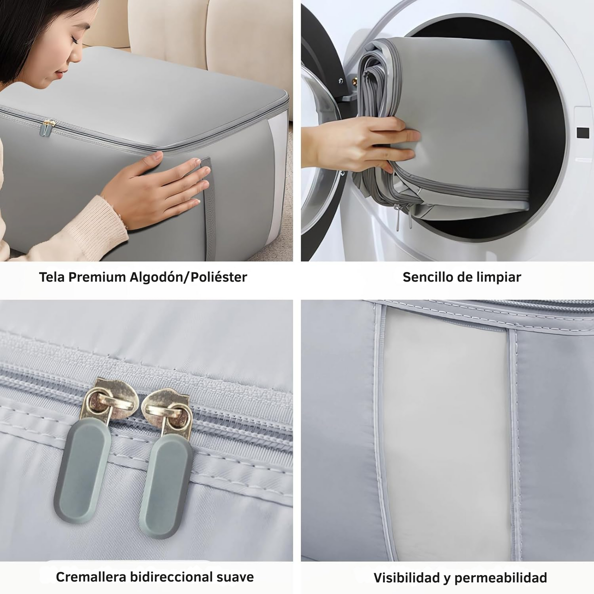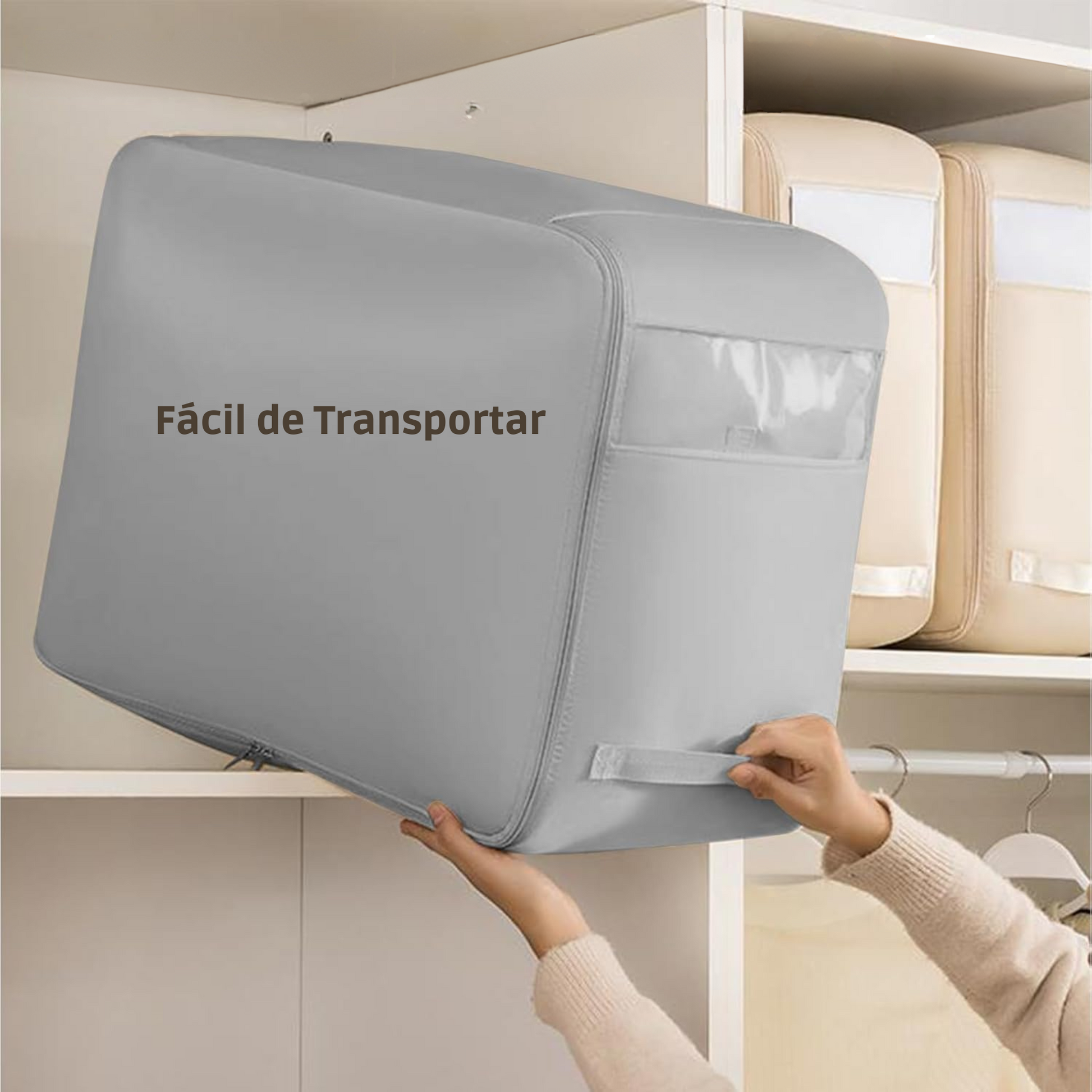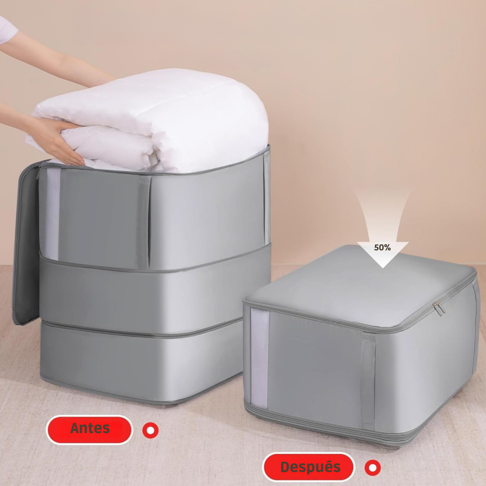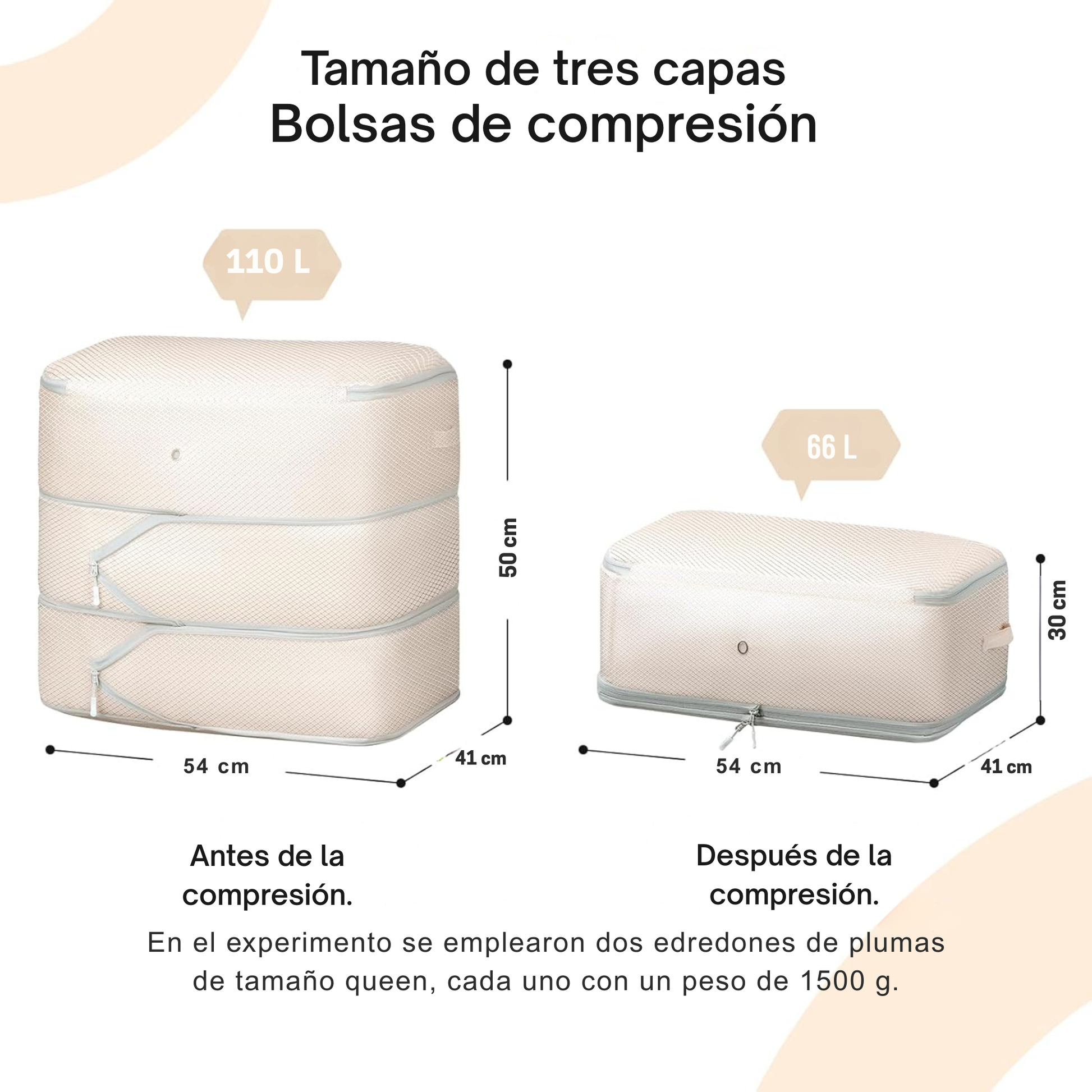 Cada bolsa puede almacenar hasta 3 edredones tamaño queen o 1 topper king, además de ropa, toallas, cojines o sábanas.